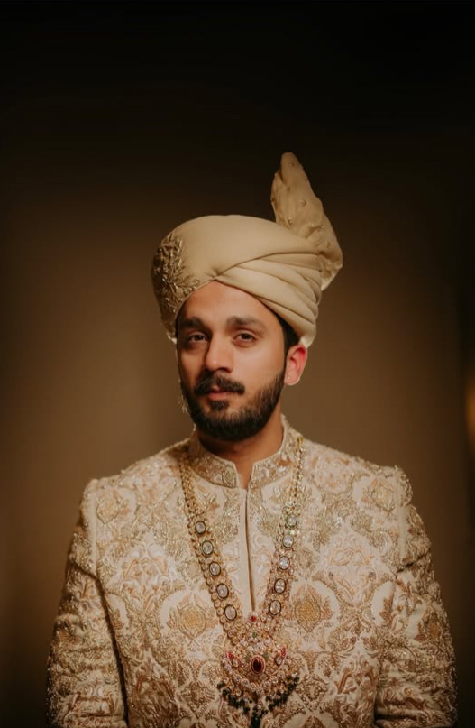 Ivory pearls set against dusky gold textures.